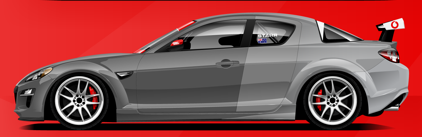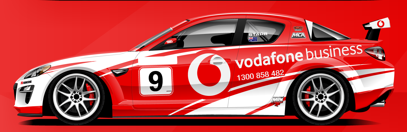 We provide customised race numbers and compliant motorsport markings, race car personalisation windscreen banners and sponsor stickers to livery and graphic design.