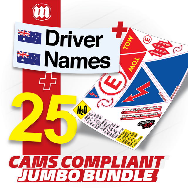 Motorsport Australia (CAMS) Compliance Bundle – Driver Names, Dayglo Number & Decal Kit
